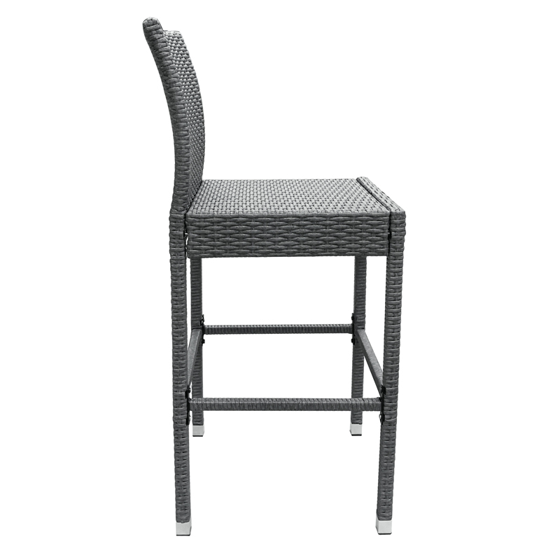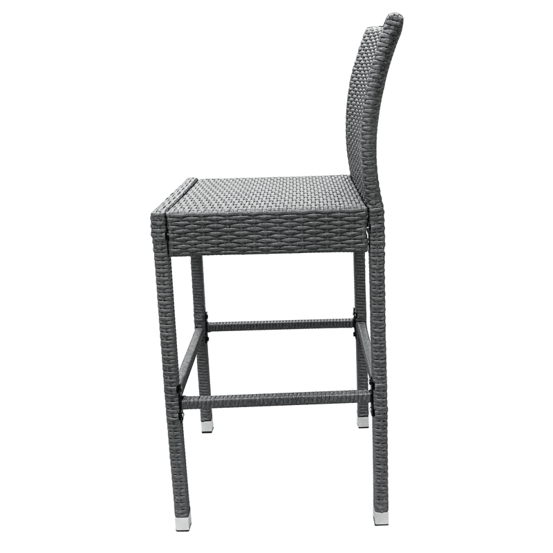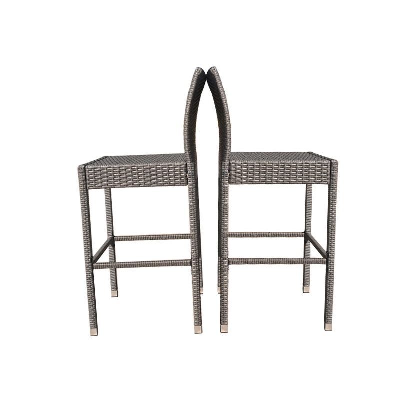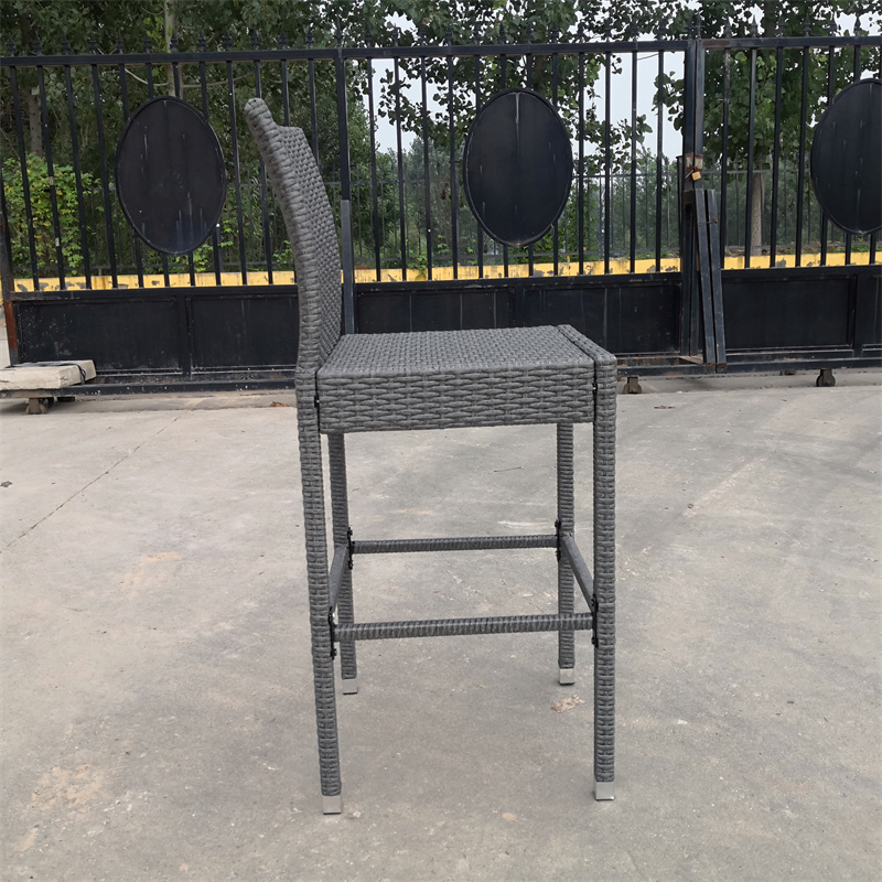 Specifications | Rattan Effect garden center party bar stools 1) 8*1.2mm rattan thicknaess, 2) Main tube: 0.8mm tube thickness, zinc-plated; 3) EN581 testing standard; 4) Color: Grey and customization welcome. |